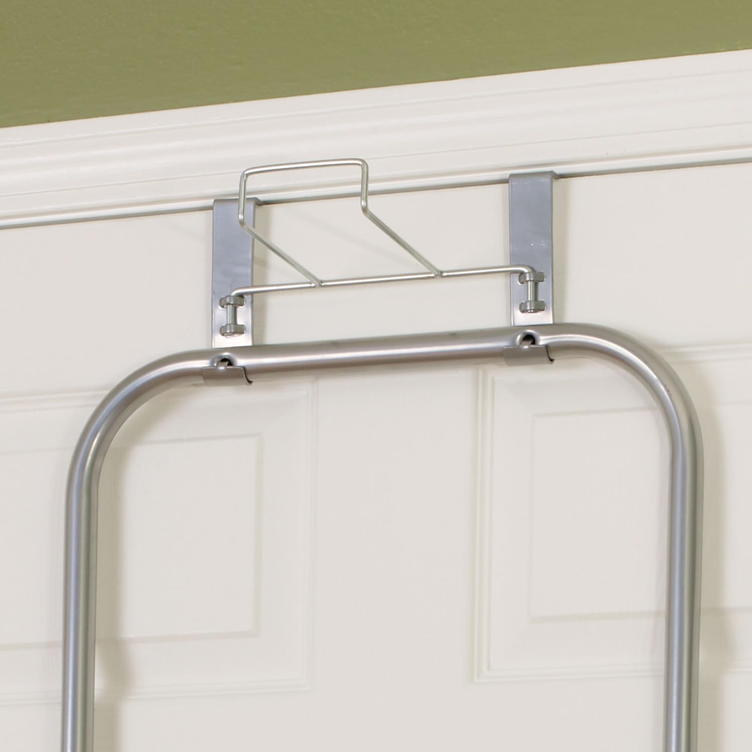 Household Essentials 144222 Over The Door Small Ironing Board with Iron Holder, Natural Cotton Cover Silver