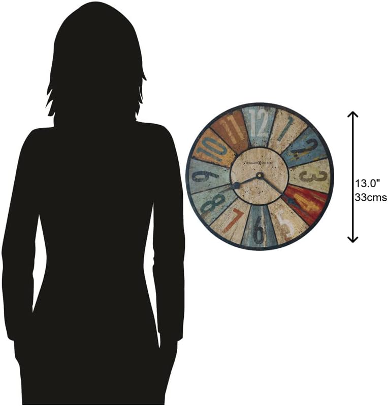 Howard Miller Sylvan II Wall Clock, Colorful Vintage Design with Black Needles Battery Operated, Wall Mount Quartz Movement Round Analog Display Perfect for Home Decor, Office and Living Room