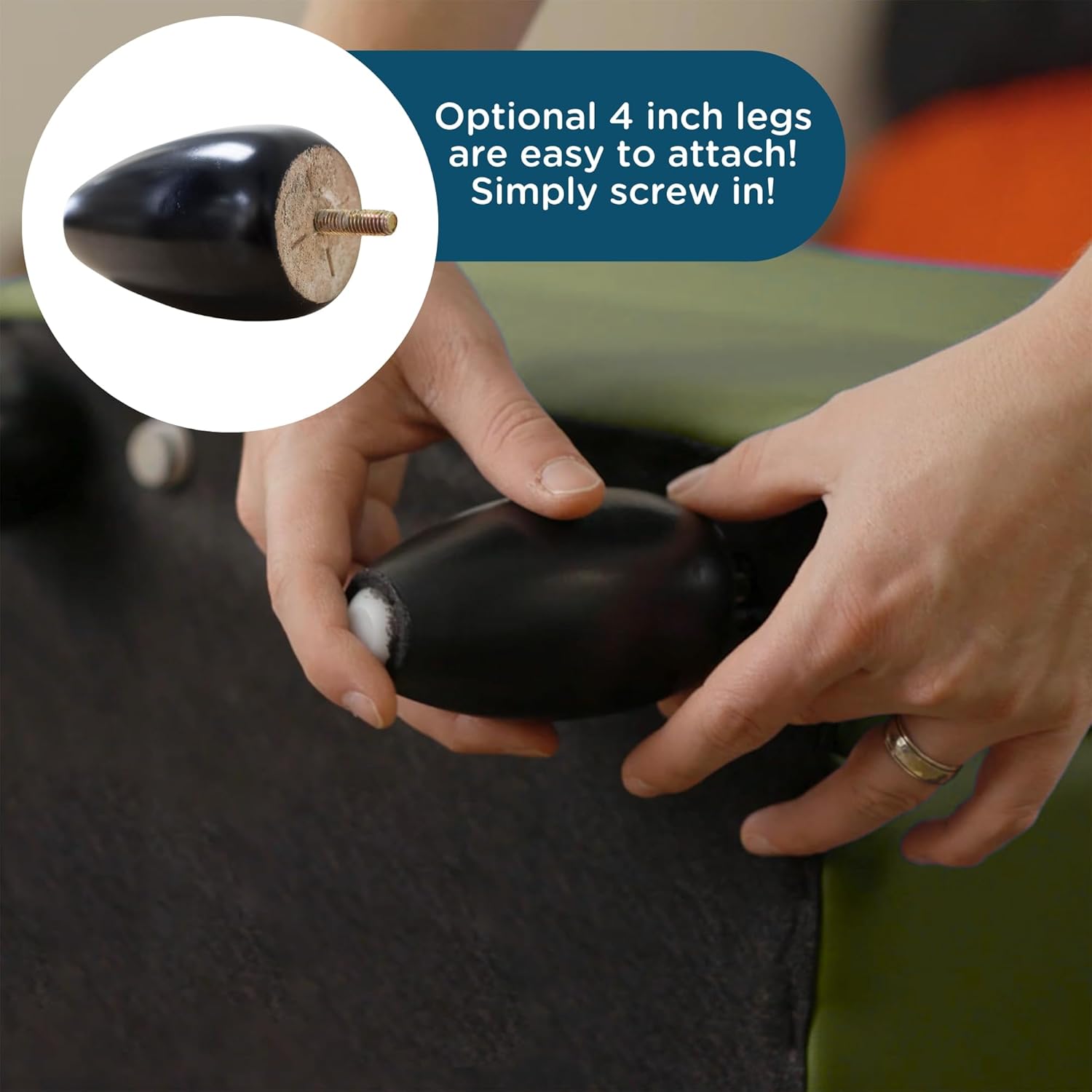 - CHAIR GROWS WITH YOUR CHILD: The adjustable toddler chair includes 4 black wooden legs that increase the chair's height 4 inches, no hardware required