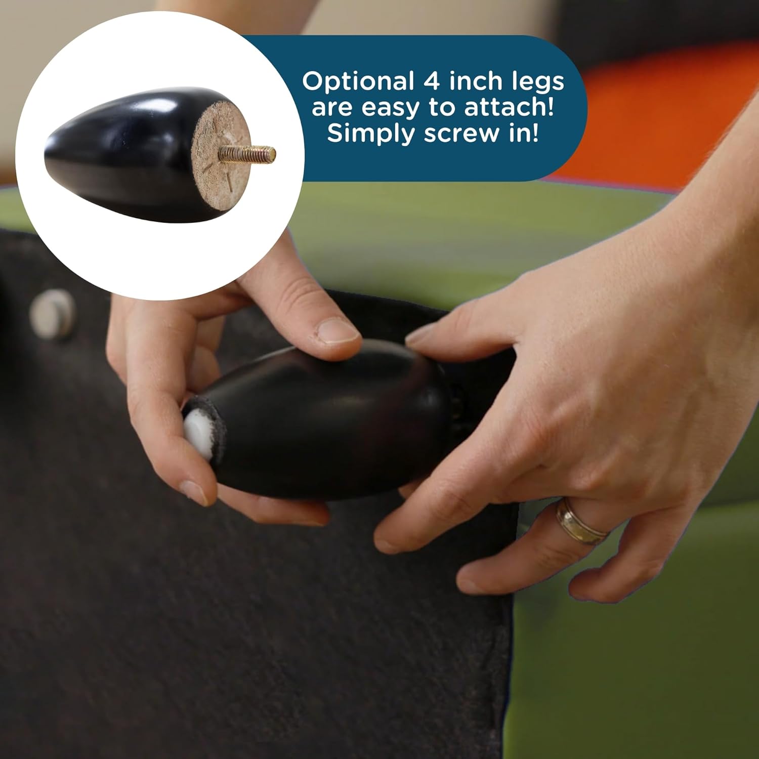 - SOFA GROWS WITH YOUR CHILD: The adjustable toddler sofa includes 4 black wooden legs that increase the sofa's height 4 inches, no hardware required