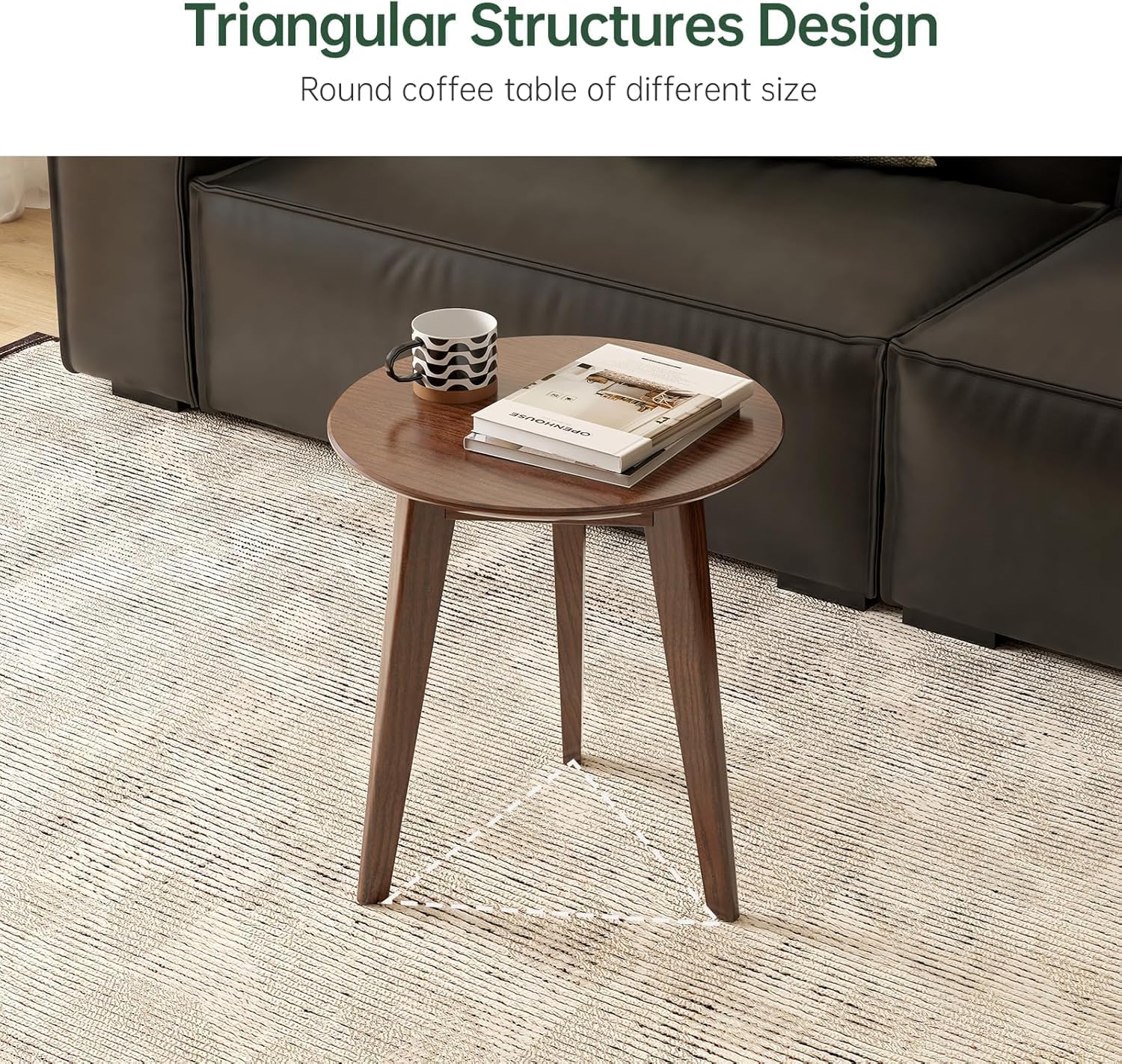 100% Solid Oak Round Side Table, Small Bedside Table for Small Spaces, Living Room End Table with Stable Frame, Modern Nightstand for Bedroom Couch, (Walnut, 17.71" D x 19.68" H)