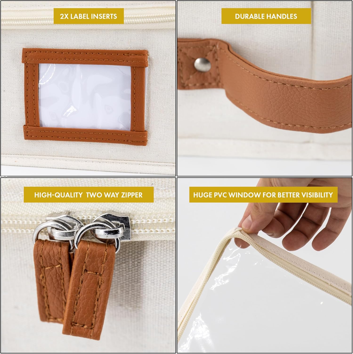 - ๐๐ฎ๐ฉ๐๐ซ๐ข๐จ๐ซ ๐๐๐ง๐ฏ๐๐ฌ & ๐๐๐ญ๐๐ซ๐ข๐๐ฅ: Made from premium quality canvas fabric, our 33x17x4.5" Plastic Under Bed Storage Containers With Lids are durable, sturdy, & carefully designed to hold large quantities of clothes, blankets, shoes, & various bed accessories. These low profile storage containers are designed to be an efficient bed room organization and storage. Our low profile under bed storage pack comes with under bed organizer that will easily blend into your home's aesthetic style.