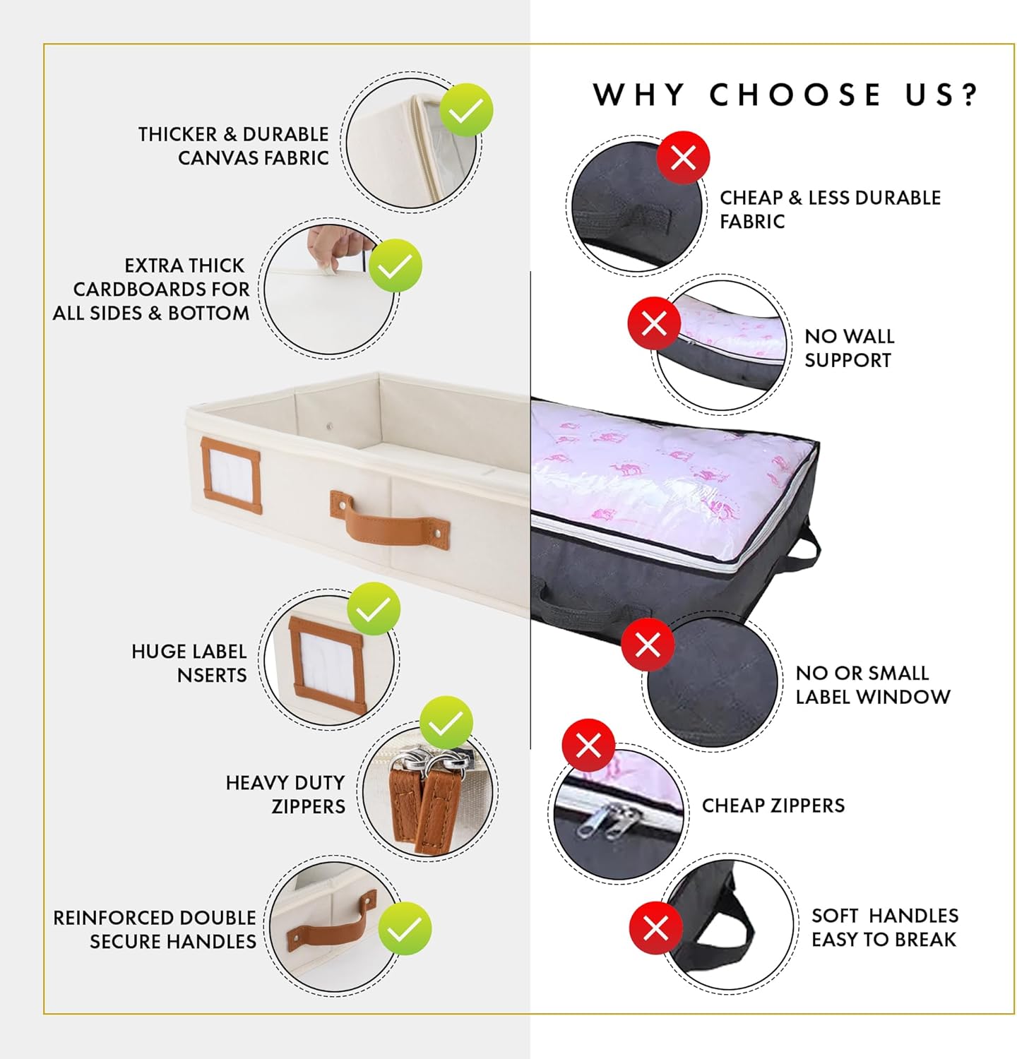 - ๐๐ฑ๐ญ๐ซ๐ ๐๐ก๐ข๐๐ค ๐๐ญ๐ฎ๐ซ๐๐ฒ ๐๐๐ซ๐๐๐จ๐๐ซ๐๐ฌ: Unlike most under bed storage box, Homelux Theory's under the bed storage containers come with extra thick cardboard on each side and bottom part to help hold their shapes and withstand frequent use & heavy loads. While other under box for clothes and shoe organizer under bed storage in the market usually has flimsy sides made of thin, lightweight materials, our timeless storage boxes for under bed are crafted for long-term durability and reliable performance.