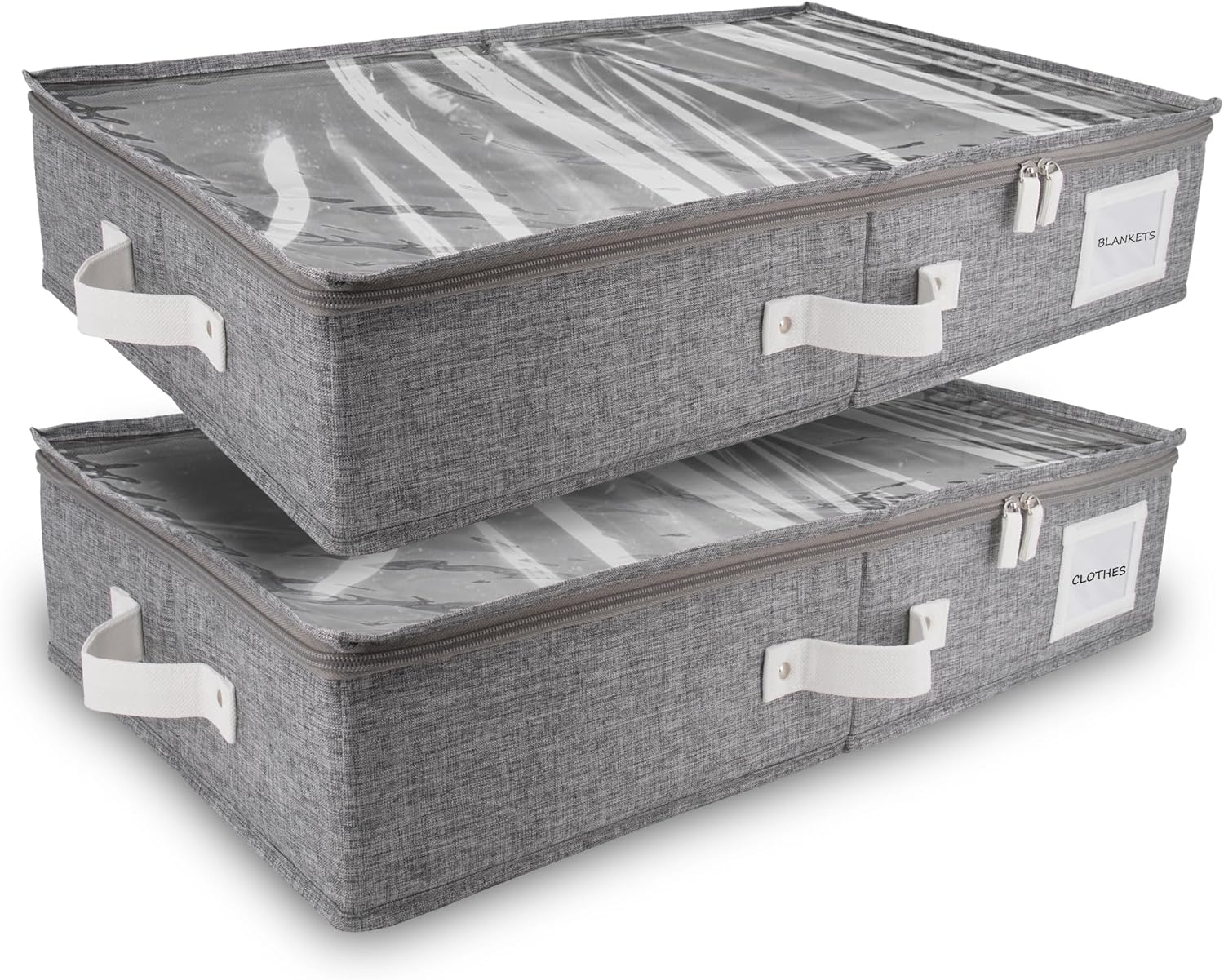 HOMELUX THEORY 2pc Under Bed Storage Containers, Bedroom Under the Bed Drawer Storage Organizer with Bins and Lids, Large Underbed Clothes Storage Box Ideal for Blanket, Fabric, & Shoes (LightGray)