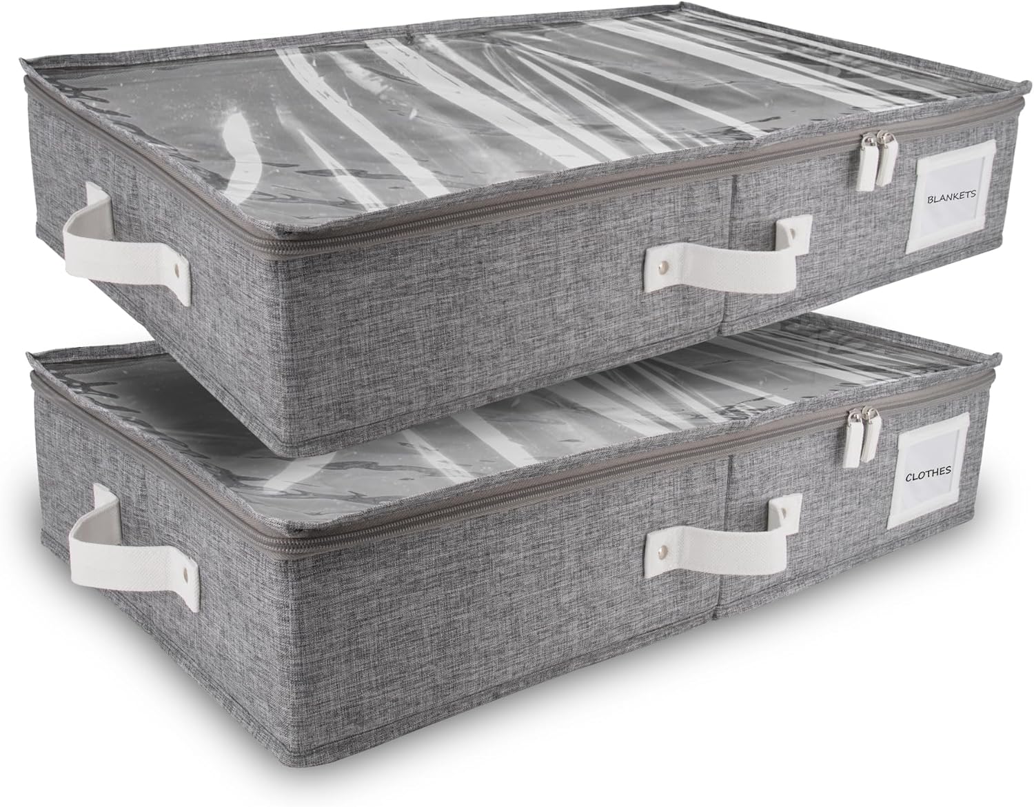 - ๐๐๐ ๐๐จ๐ฉ ๐๐จ๐ฏ๐๐ซ ๐ญ๐จ ๐๐๐๐ง๐ญ๐ข๐๐ฒ ๐๐จ๐ง๐ญ๐๐ง๐ญ๐ฌ ๐๐ฆ๐ฆ๐๐๐ข๐๐ญ๐๐ฅ๐ฒ: Homelux Theory's thin under bed storage containers not only comes with a durable clear transparent PVC lid, but it also has 2 large label pockets, allowing you to easily identify the contents such as bedroom accessories & clothes of each underbed storage containers without having to open them. This under bed storage clothes not only works best as a shoe box drawer storage, but is also for under bed under crib storage bin and underbed clothes box.