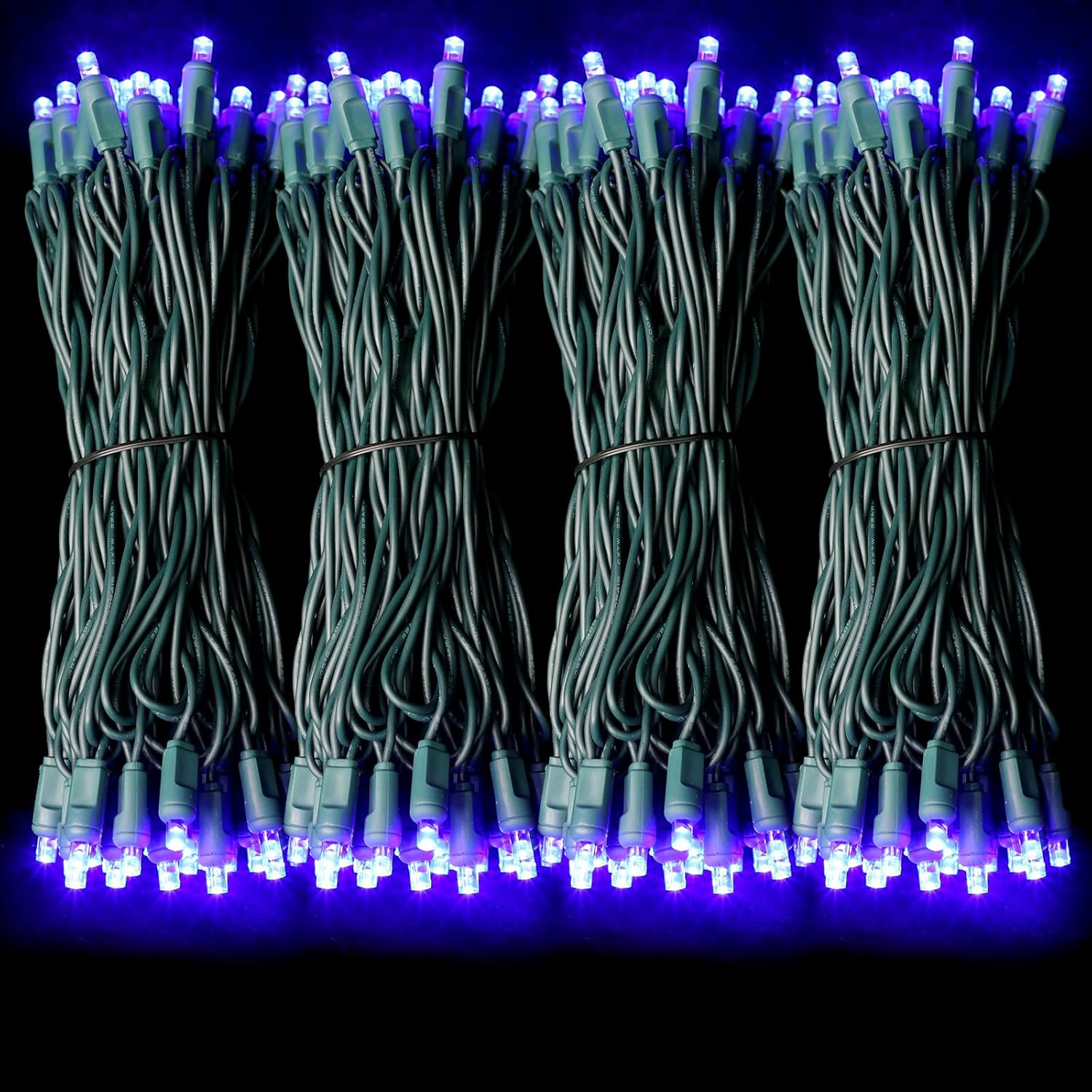 - One-Piece 5MM Commercial Decoration LIGHTS : 50ft 100 LED Lights (50 Lights 25ft X2Groups), 6-inch spacing. Green wires have a wide range of uses and are perfectly integrated with green plants or shrubs.no extra adapter is needed,bulbs are cool to touch,with the rectifier,keep the light steady (not twinkle).