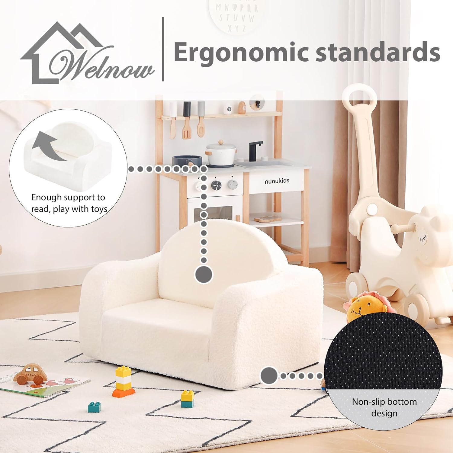 - PREMIUM MATERIALS: Crafted with skin-friendly fabrics and thick foam, this toddler sofa ensures a gentle touch against your child's skin. The arms provide reliable support, preventing concerns of rolling off. Trust in quality materials for a safe and comfortable seating experience.