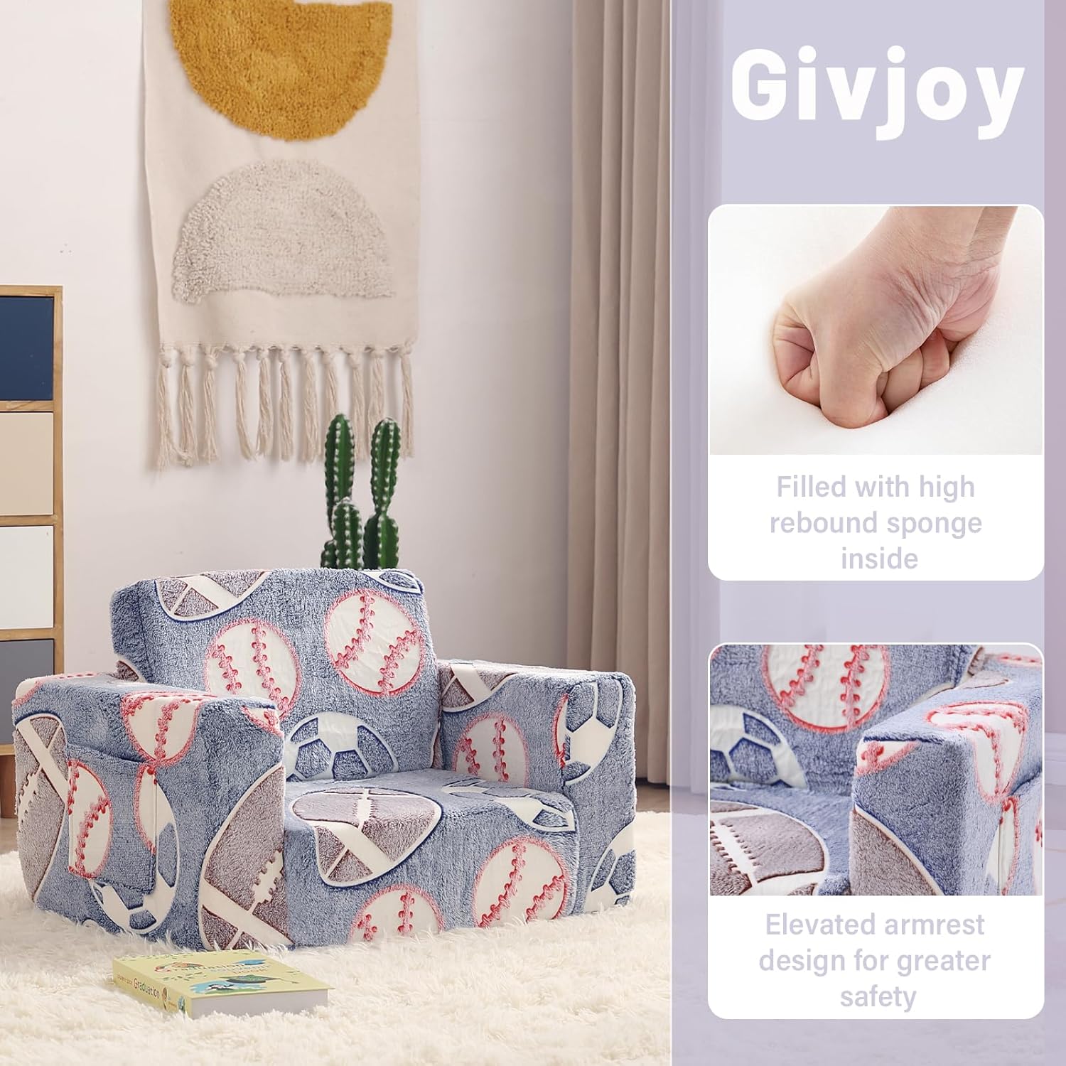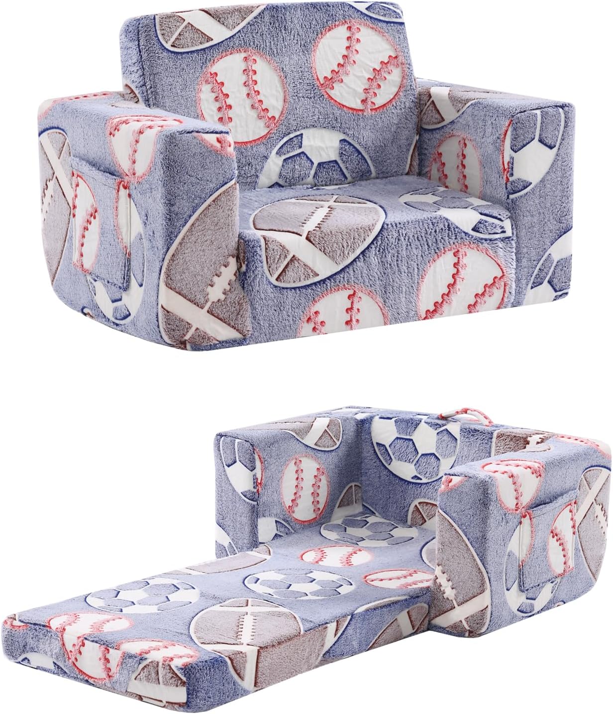Toddler Chair Kids Couch, 2-in-1 Toddler Soft Sherpa Couch Fold Out Armchair Glow in The Dark with Removable Cover, Convertible Reading Chair Toddler Sofa for Kids, Football