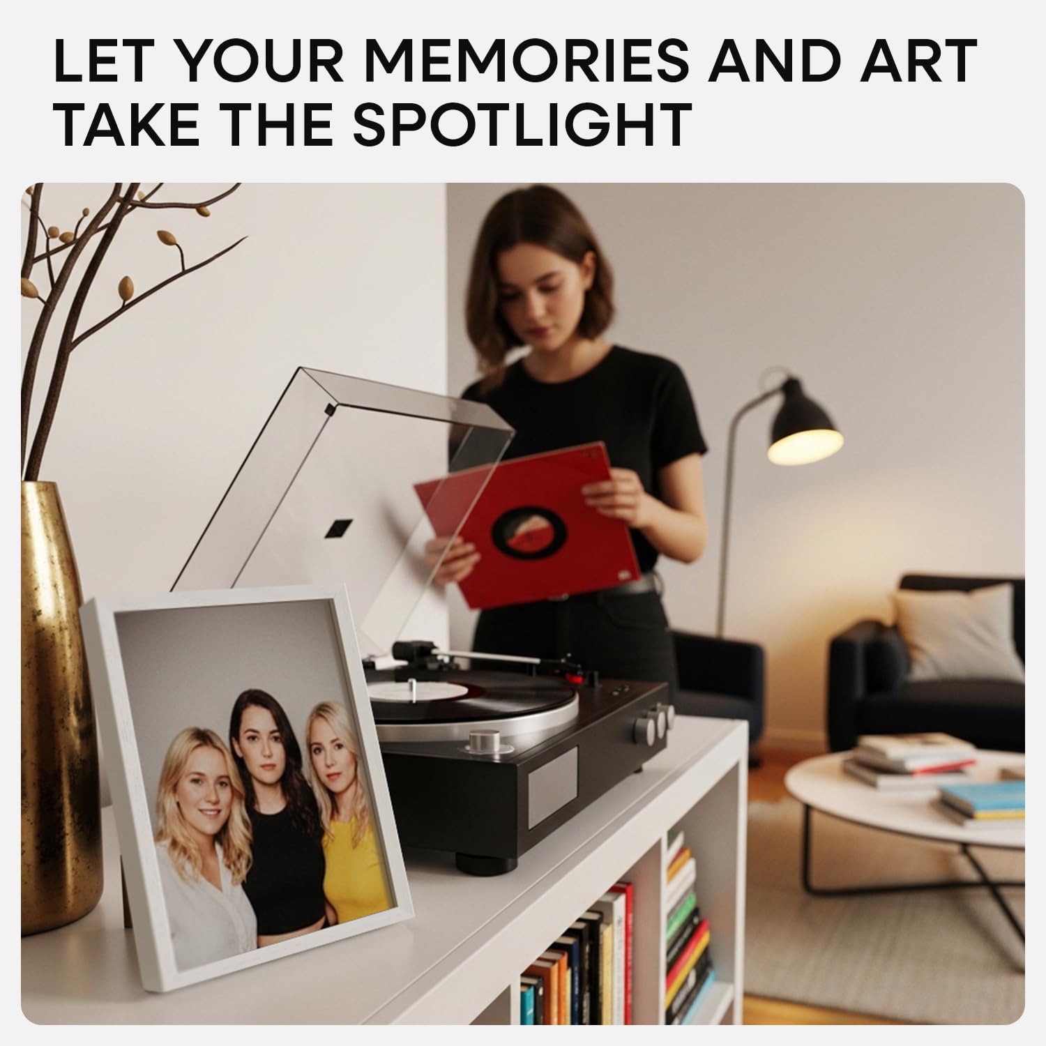 - GALLERY GRADE GLASS, TRUE CLARITY. Why settle for cloudy plexi? Our ultra-clear tempered glass sharpens every detail and adds instant polish to your photo or print.