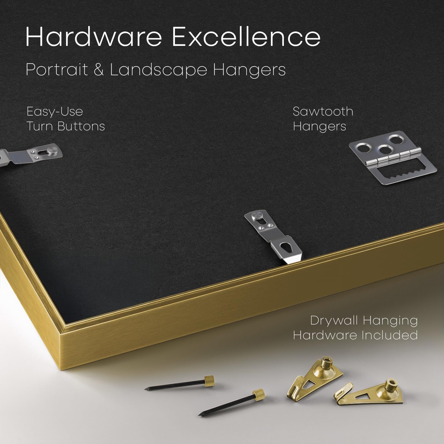 Homeforia 9x12 Gold Frame, High End Metal 9 x 12 Picture Frames with Mat 7 by 10 inch Photo, 9by12 Thin Poster Frame Matted to 7x10 Art, 12x9 Wall or Tabletop Frame, Tempered Glass, Wall Kit, Set of 1