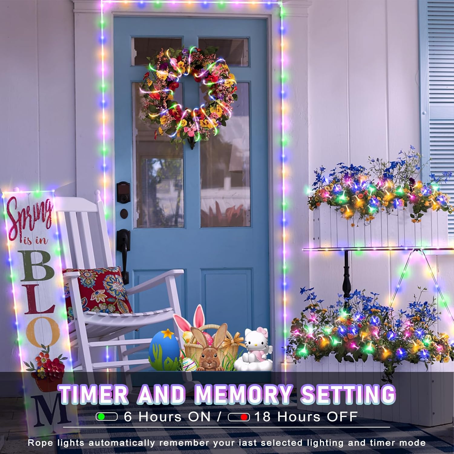 - Waterproof Outdoor String Lights: IP65 Waterproof, they are suitable for all weather use, remaining bright and sparkling even during strong rain and windy days. The outdoor rope lights is ideal for year-round outdoor decor and can illuminate gazebos, canopy, corridors, gardens, and patios. But please note the plug is not waterproof.