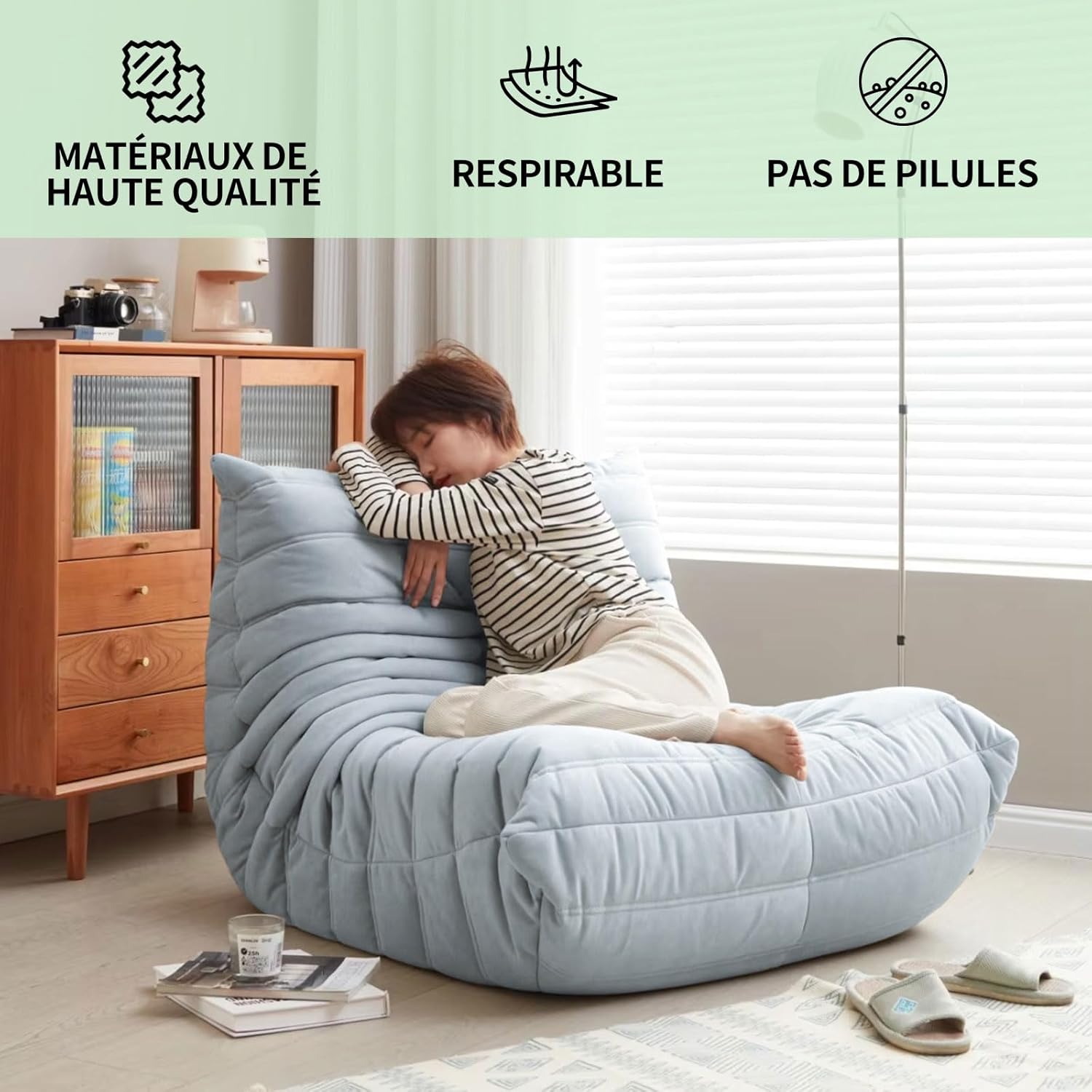- Versatile Design: This modern bean bag chair offers a stylish and comfortable seating option for any living room, bedroom, or dorm room.