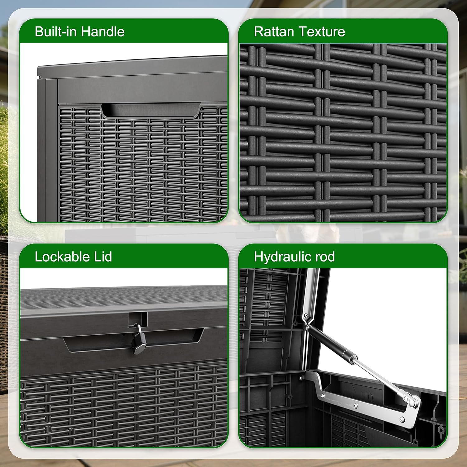 - ADAPTABLE TO VARIOUS SCENES: Whether used as an indoor laundry storage chest or an outdoor deck box container for items like outdoor cushions, garden tools, pool accessories, and this patio storage box provides abundant space. It's also versatile as a side table, yard seat, storage bench, or footrest
