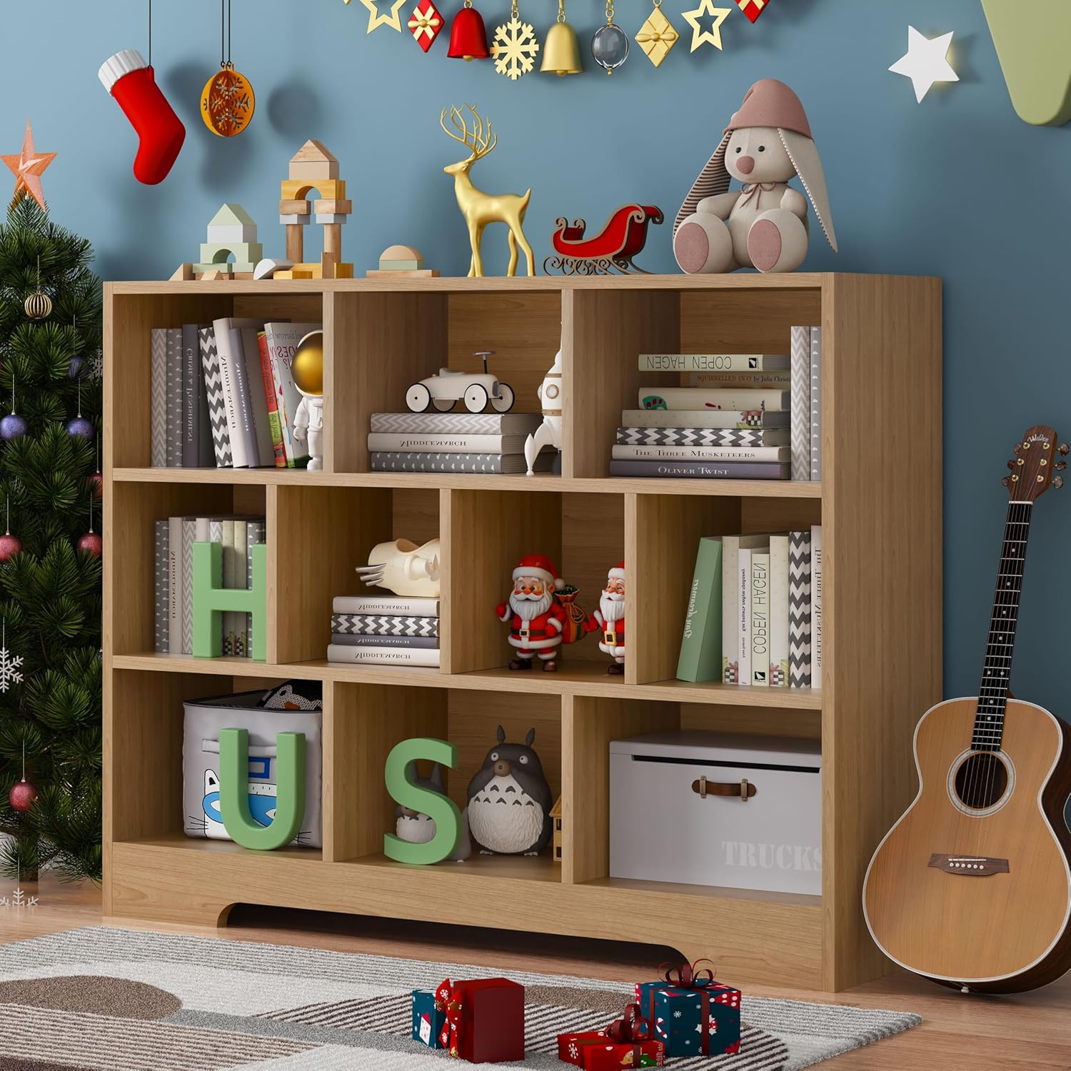 - ăDurable Kids BookshelfăOverall dimensions: 43.3âL x 9.4âW x 39.8âH. This kids Cube Storage Organizer is crafted from MDF board, which is durable and sturdy. Eco-friendly materials are quite child-friendly! The thick bottom base is designed to strengthen the stability.